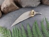 Finished in a sophisticated combination of satin nickel and brushed brass, the brooch carries a subtle contrast of cool and warm tones that enhances its earthy elegance. At 115mm, it is a bold statement accessory—perfect for nature-inspired style or as a unique, one-of-a-kind gift.