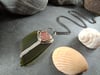 This handcrafted pendant features a stunning piece of natural sea glass paired with a carnelian heart companion, preserved forever through the art of electroforming. The combination of ocean-worn textures and vibrant carnelian creates a harmonious, eye-catching design.