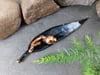 Finished in a striking blue nickel patina paired with radiant bright copper, the surface shimmers with contrasting tones—deep blue undertones enhanced by warm, metallic highlights. At 125mm, it is a bold, statement-making piece—perfect as a standout accessory for special occasions or as a treasured addition to any collection.