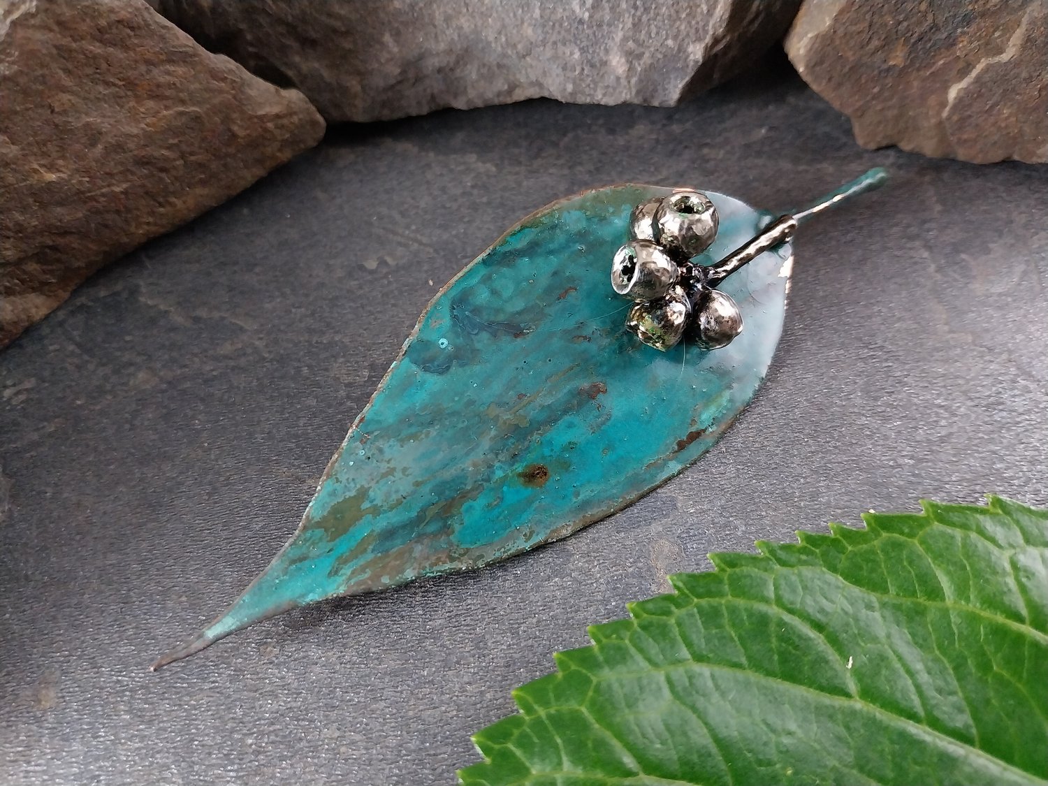 Gum Leaf / Gum Nut Brooch – Green Copper Patina / Antique Nickel (105mm)
