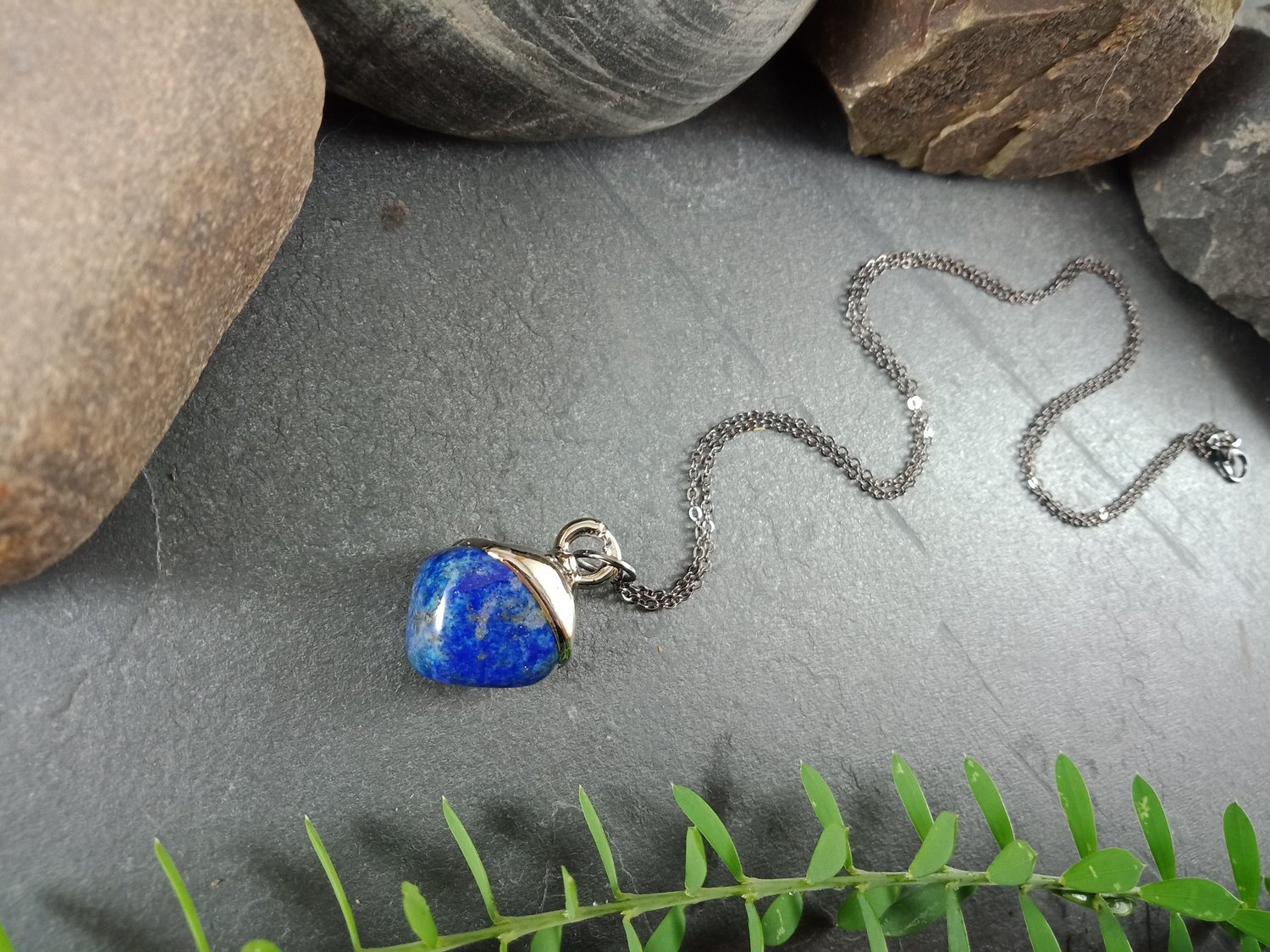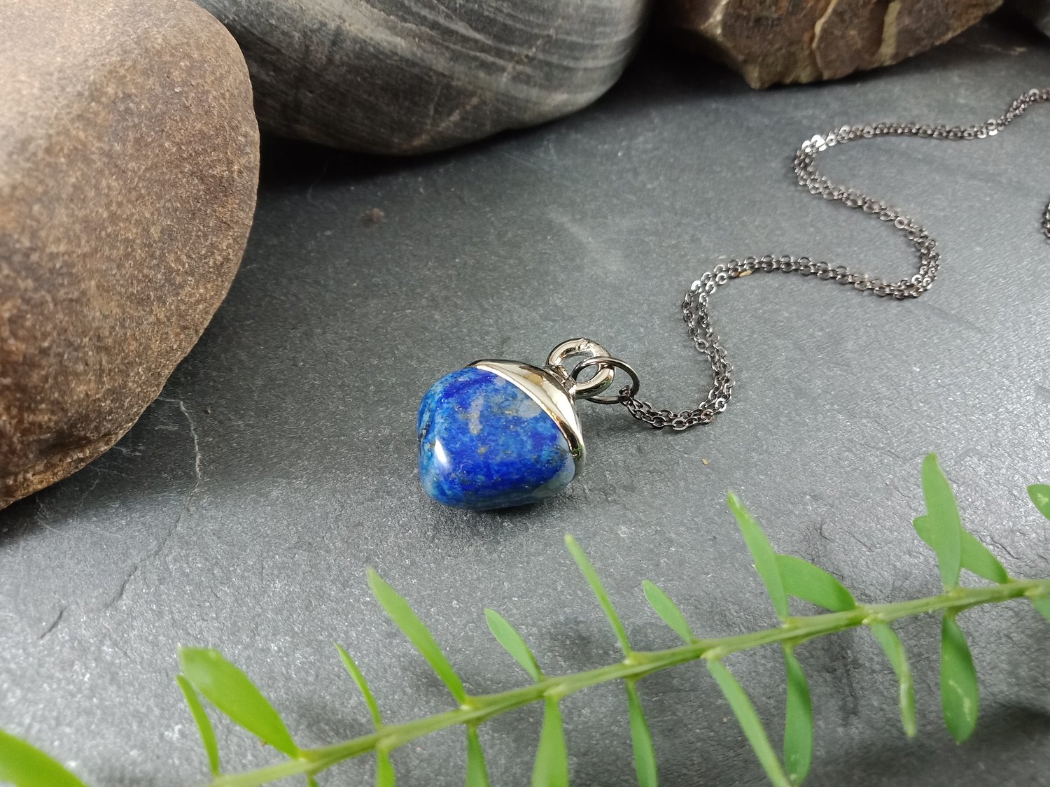 Tumbled Lapis Lazuli Pendant – Bright Nickel (20mm)