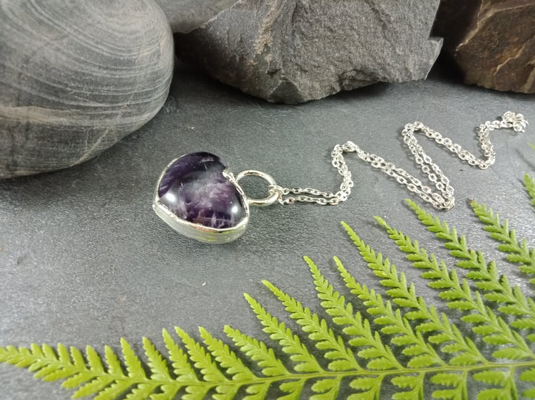 Finished in bright nickel, the pendant carries a luminous metallic sheen that enhances the natural beauty and texture of the stone. At 20mm, it is a delicate yet eye-catching piece—perfect for everyday wear or as a unique, nature-inspired gift.