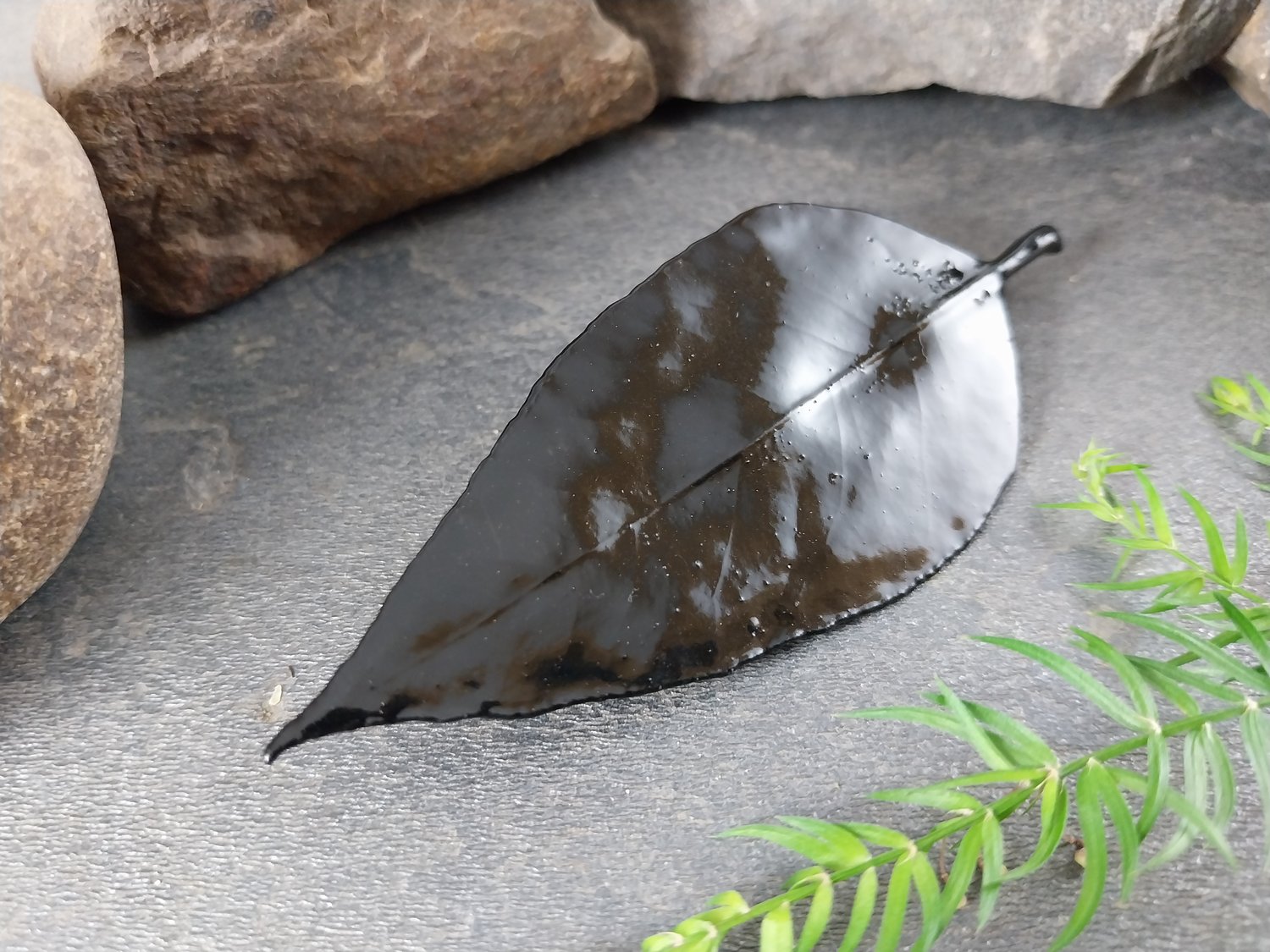 This striking brooch features a genuine natural gum leaf, preserved forever through the art of electroforming. Every delicate vein and contour of the leaf is captured in exquisite detail, showcasing the intricate beauty of nature.