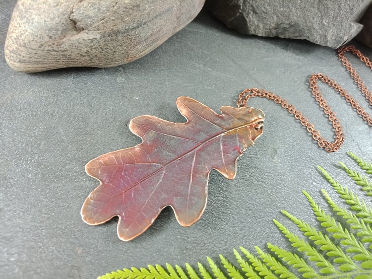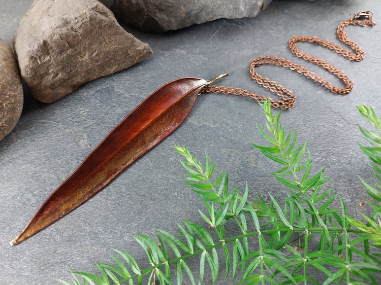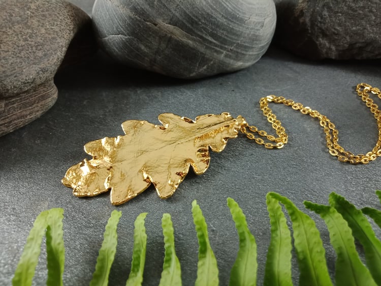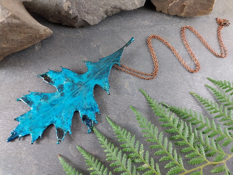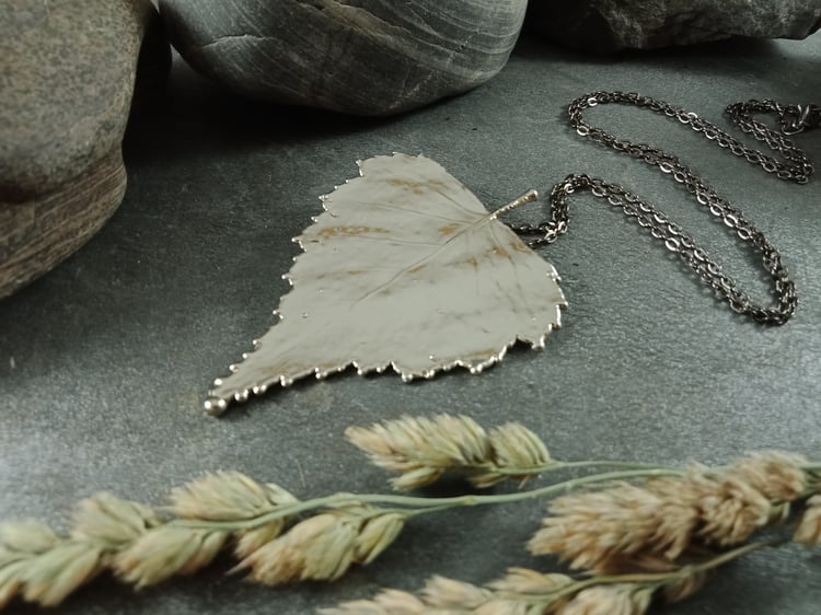 This handcrafted pendant features a genuine natural maple leaf, preserved forever through the art of electroforming. Every delicate vein and natural curve of the leaf is beautifully captured, celebrating the organic elegance of nature.