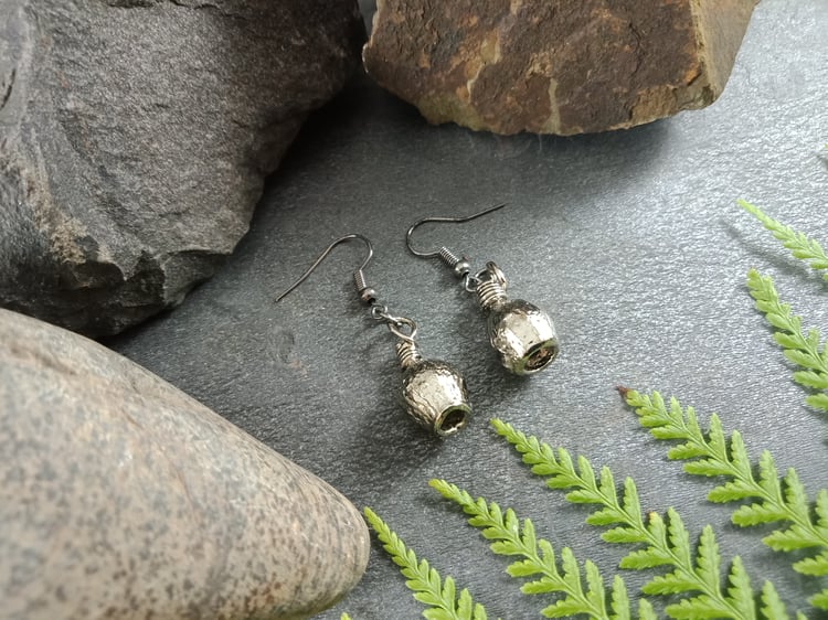 These handcrafted Pine Cone Earrings feature genuine tiny pine cones, carefully preserved through electroforming to capture their natural texture and detail in lasting beauty.