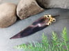 Finished in a vibrant rainbow copper patina paired with gleaming gold, the piece radiates depth and warmth. The shifting patina tones bring iridescent highlights that contrast beautifully with the rich golden accents, giving the brooch both an organic and luxurious feel. At 112mm, it is a striking statement piece—perfect for special occasions or as a treasured addition to your collection.