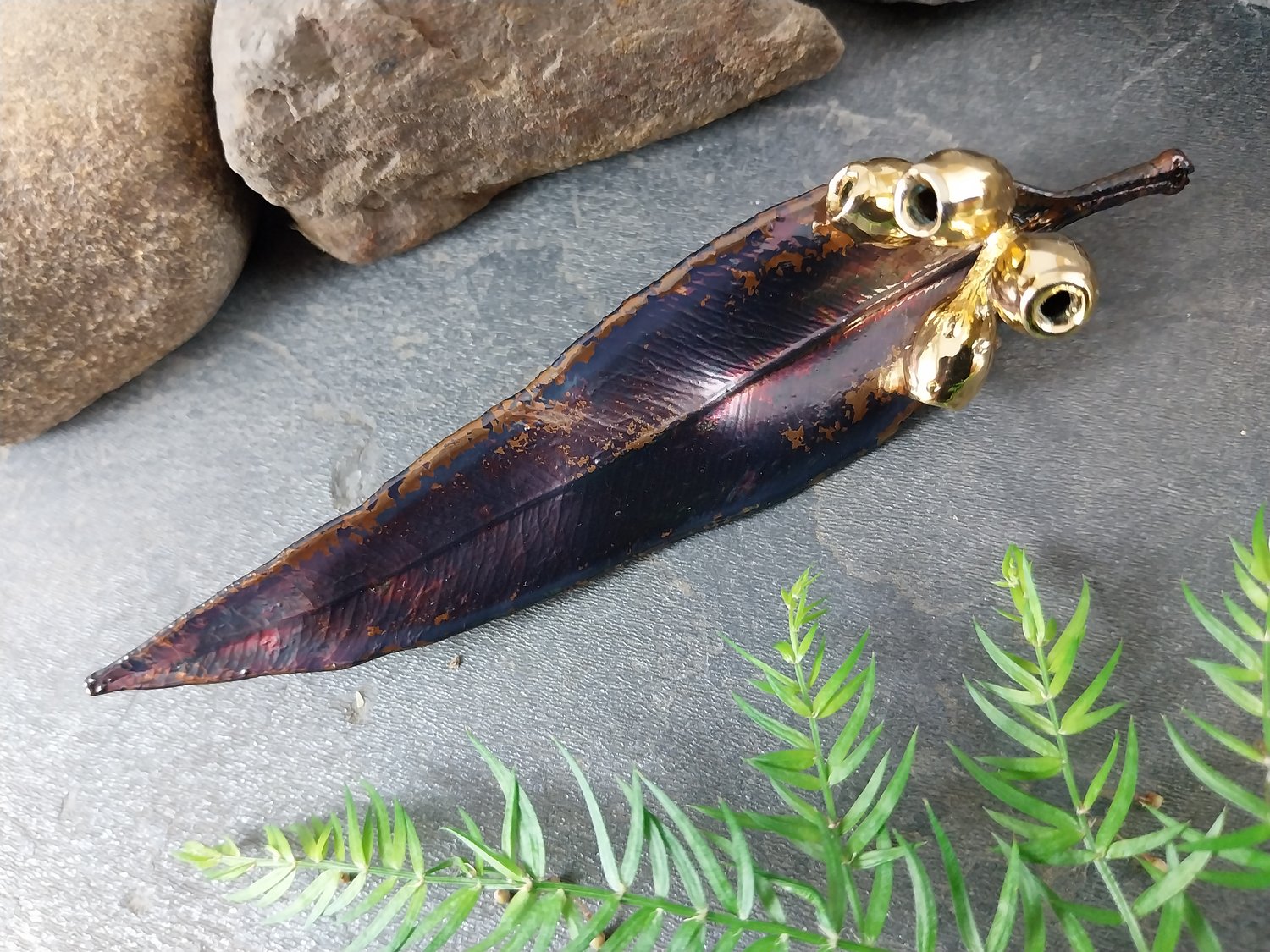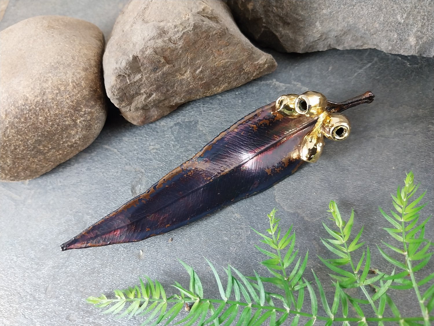 Gum Leaf / Gum Nut Brooch – Rainbow Copper Patina / Gold (112mm)