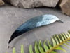 The blue nickel patina finish brings a striking, contemporary edge, with rich tones and subtle variations that highlight the natural veins of the leaf. At 89mm, it is the perfect size for everyday wear—lightweight yet distinctive, adding a touch of artistry to any outfit.