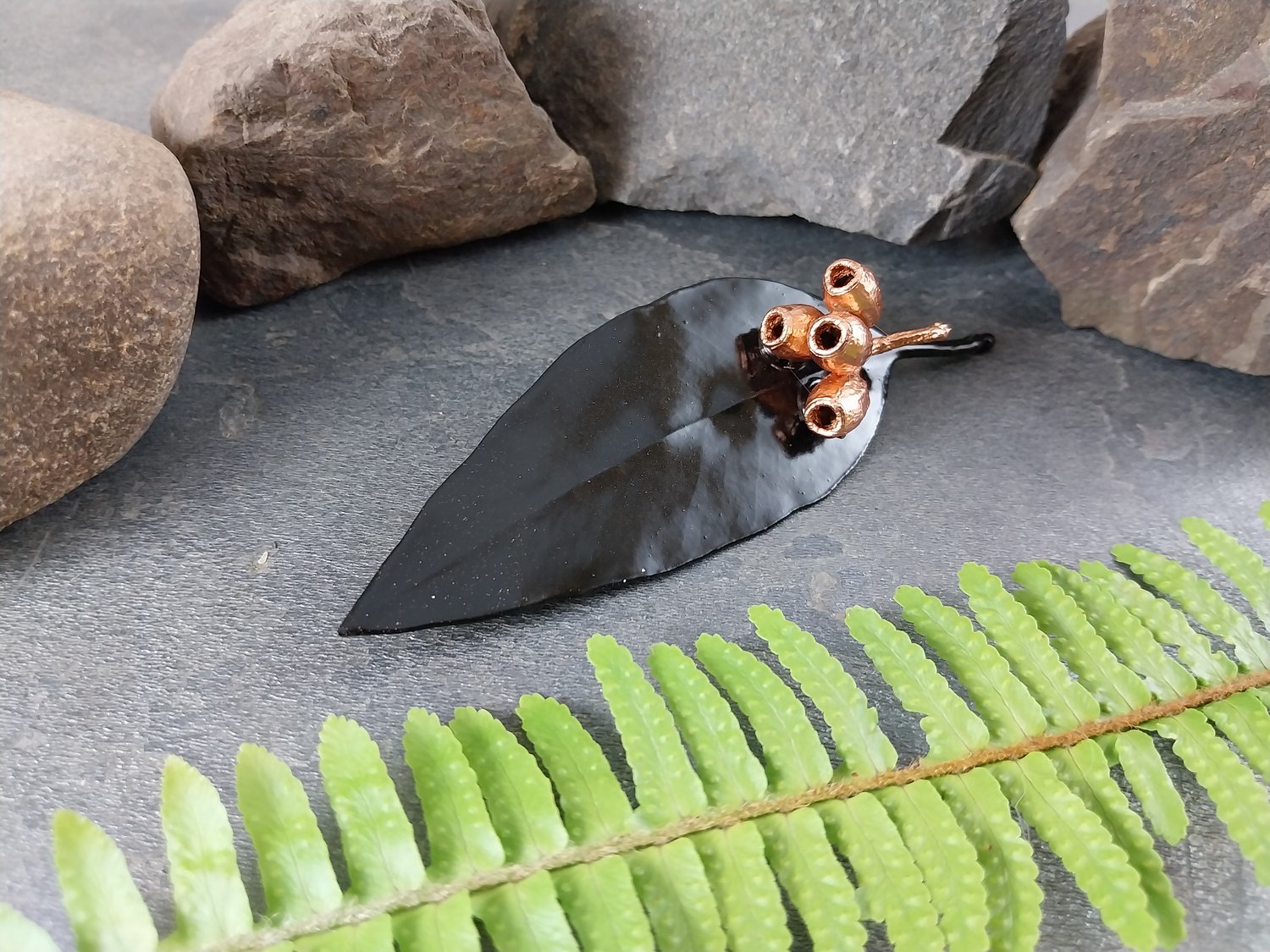 Gum Leaf / Gum Nut Brooch – Black Chrome / Bright Copper (102mm)