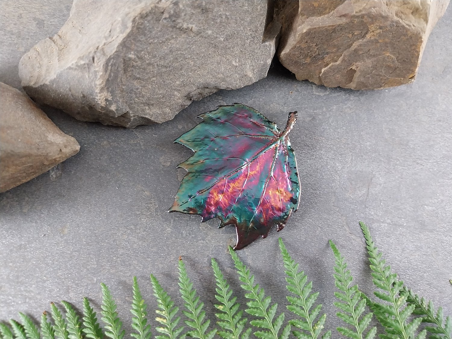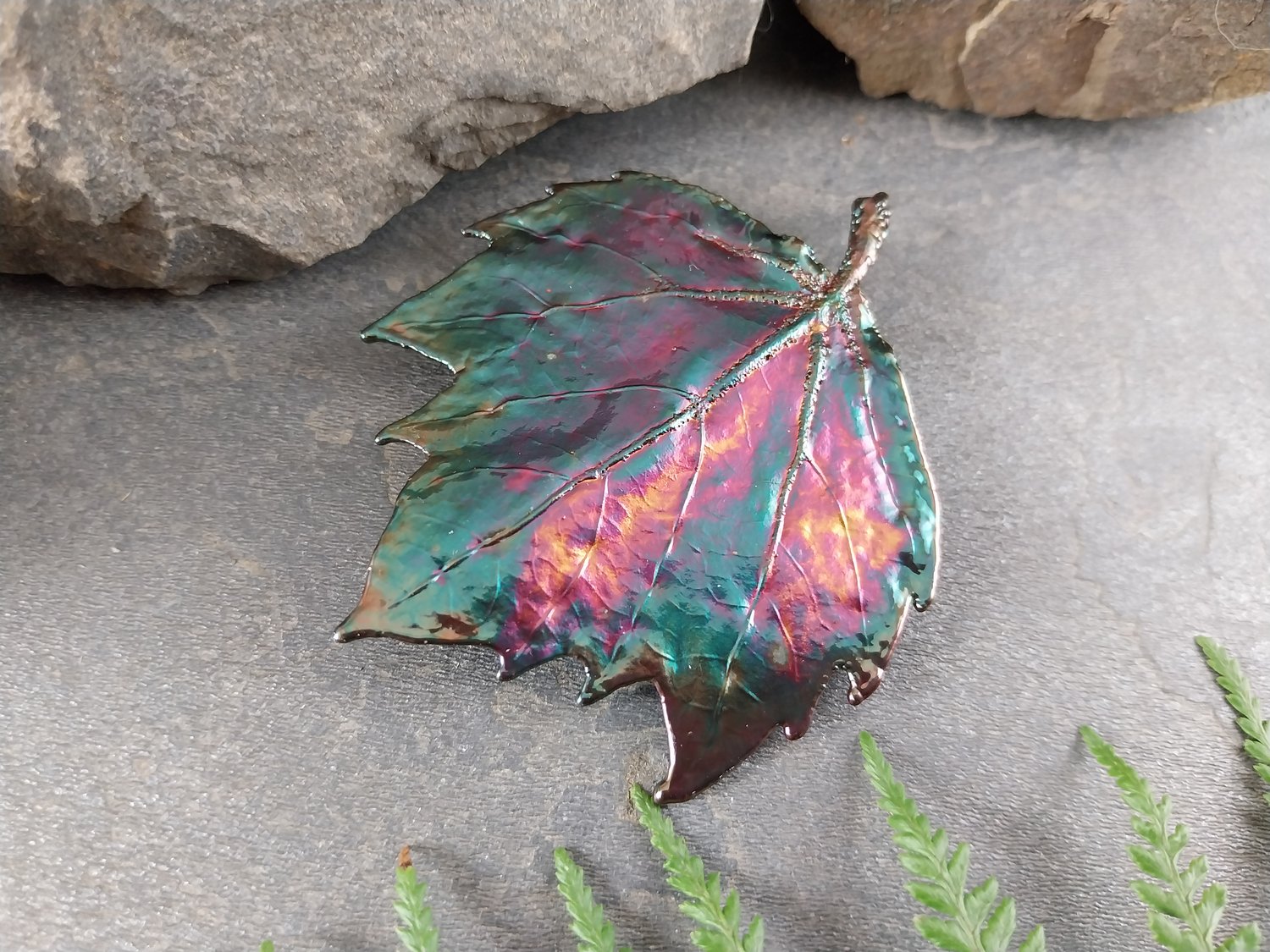 Maple Leaf Brooch – Rainbow Copper Patina (70mm)