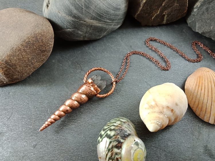 This handcrafted Shell Pendant features a genuine natural shell, preserved through electroforming to capture its delicate textures and organic form in lasting detail.