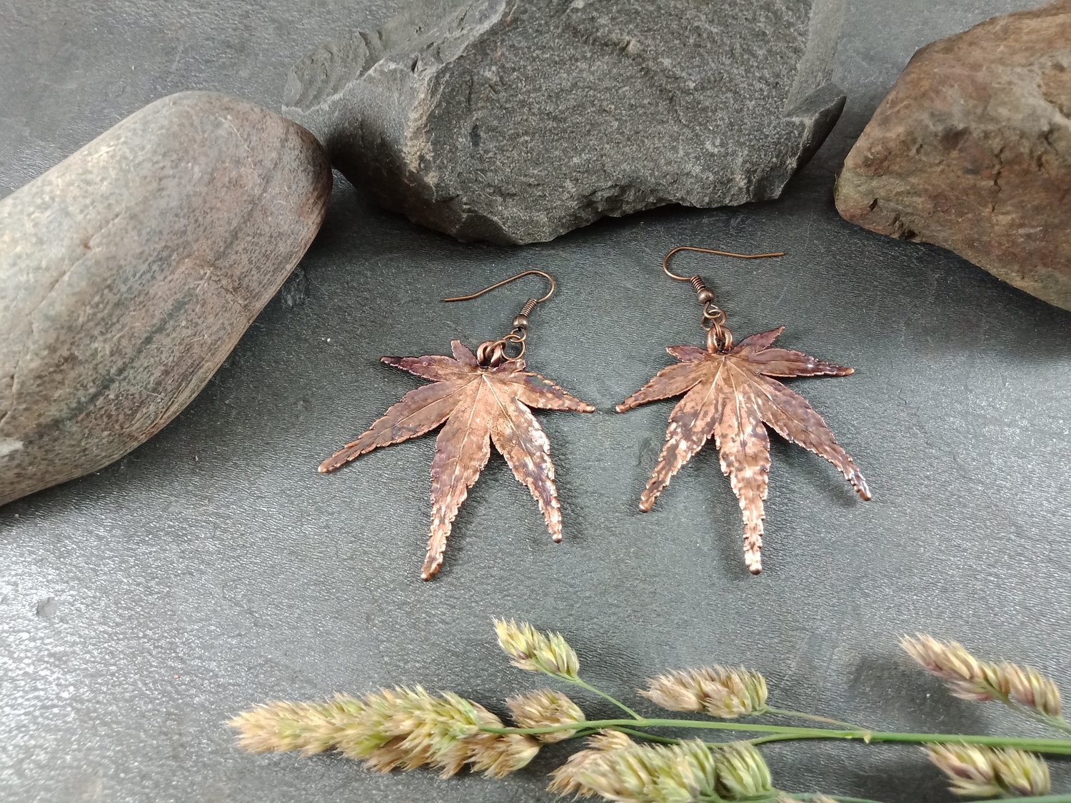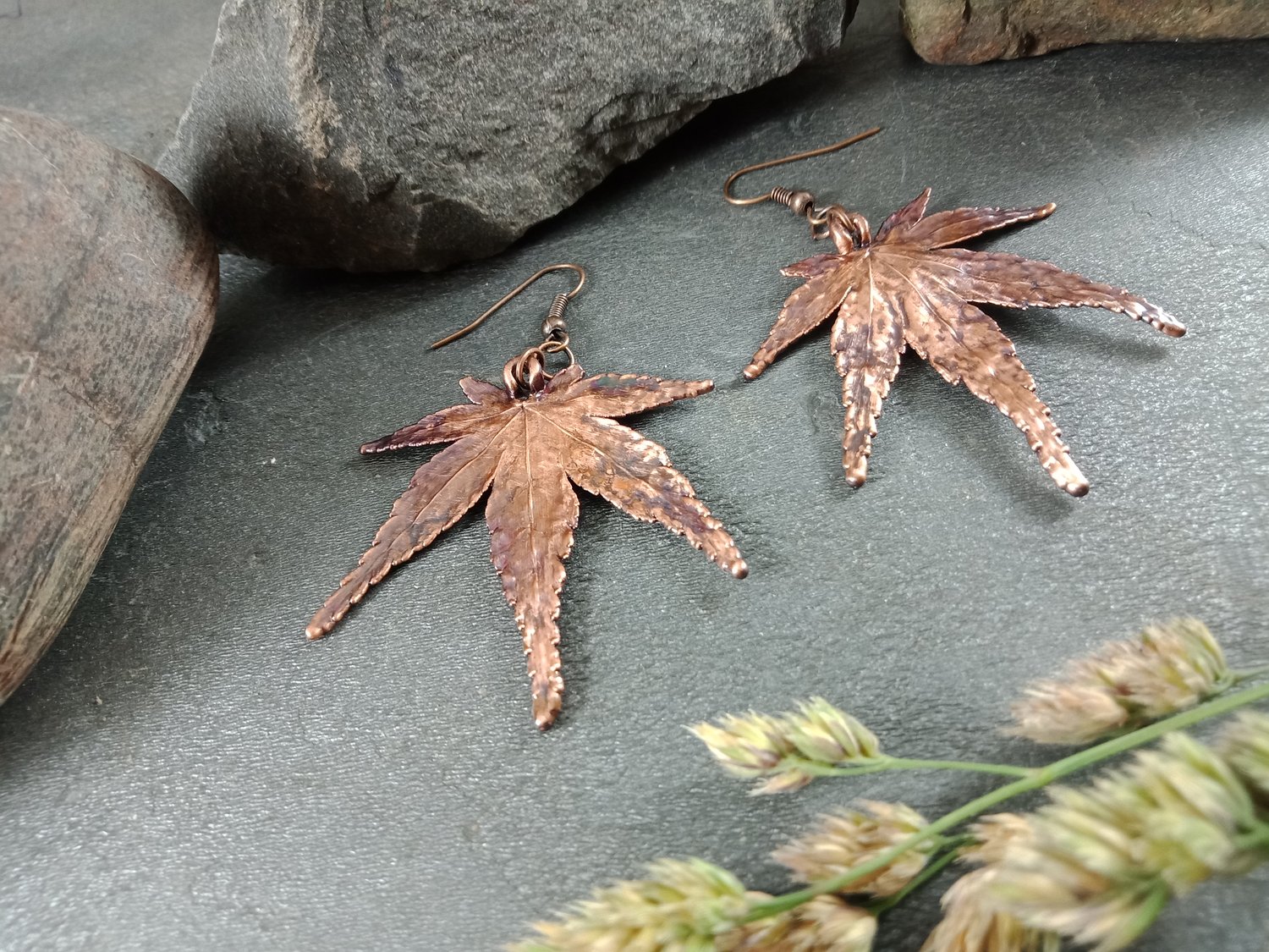 Japanese Maple Leaf Earrings – Antique Copper (45mm)