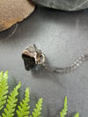 Finished in a rustic antique nickel, the pendant carries a timeless metallic patina that enhances the raw beauty of the crystal. At 22mm, it is a delicate yet captivating piece—perfect for everyday wear or as a meaningful nature-inspired gift.