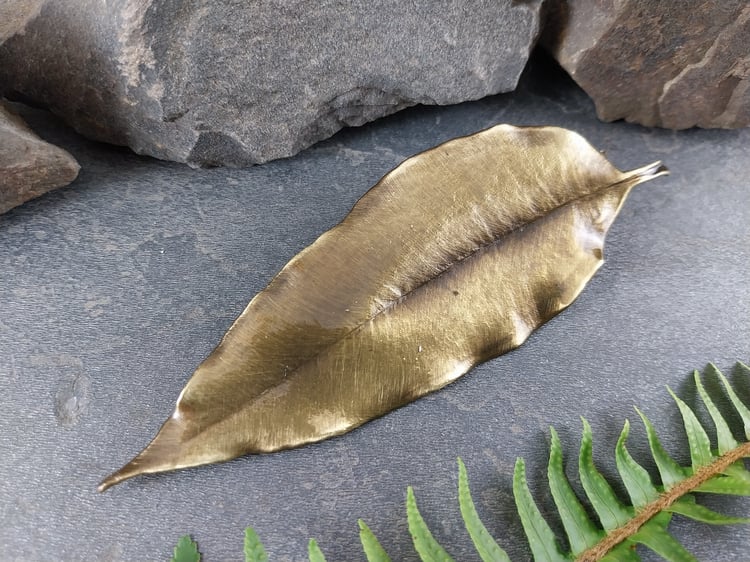 This beautiful brooch features a real natural ginkgo leaf, preserved forever through the art of electroforming. The fan-shaped form and fine ridges of the ginkgo are captured in exquisite detail, celebrating one of nature’s most iconic and enduring symbols.
