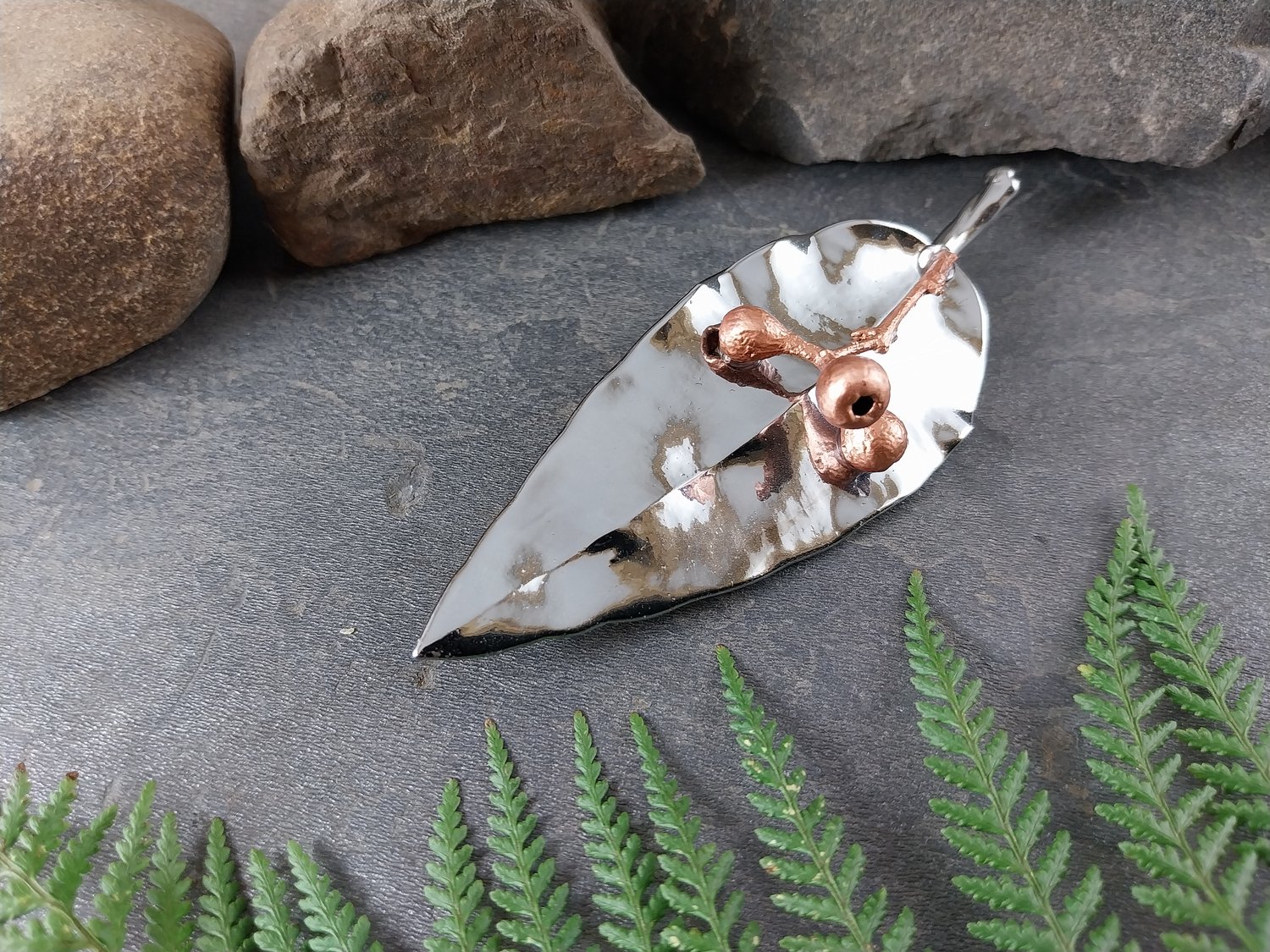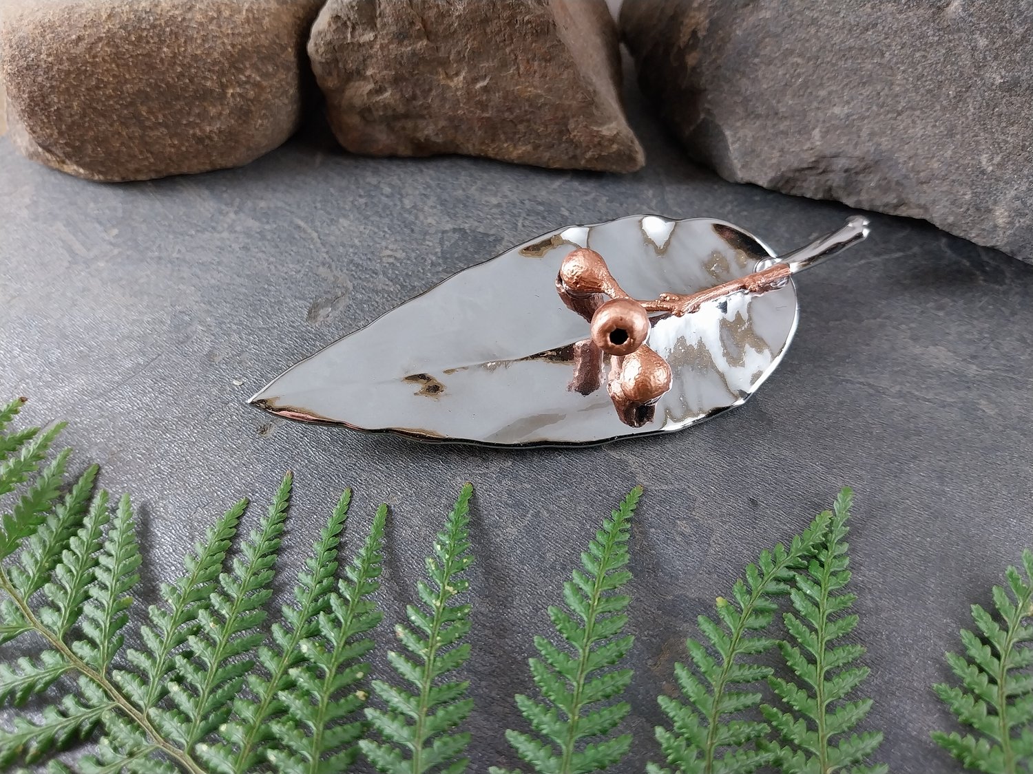 Gum Leaf & Gum Nut Brooch – Chrome / Brushed Copper (98mm)