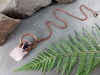 Electroformed in an antique copper finish, the pendant carries a warm, rustic patina that enhances the natural textures and colours of the stones. At 46mm, it is a versatile statement piece—delicate enough for everyday wear yet bold in its natural charm.