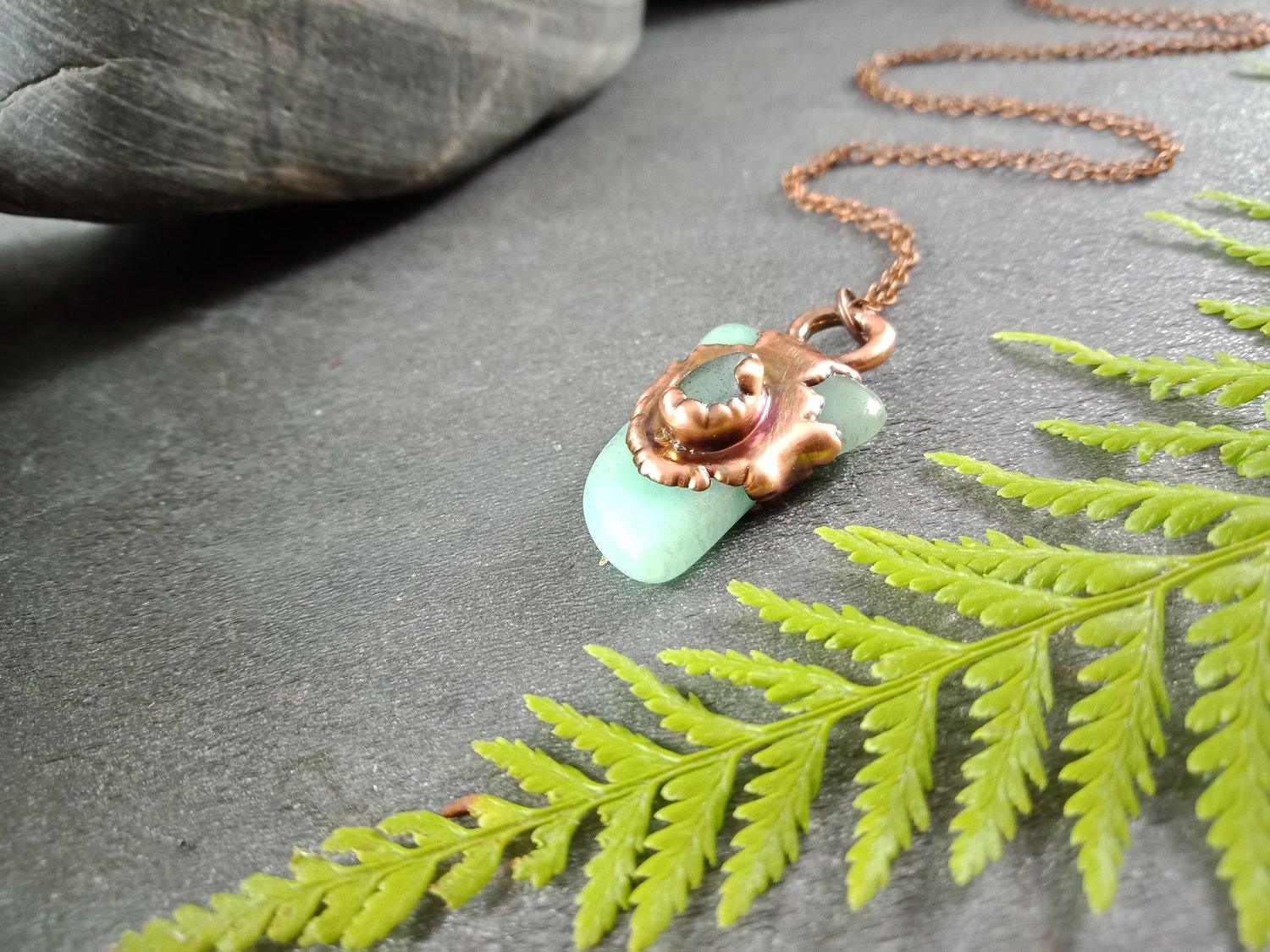 Finished in rustic antique copper, the pendant carries a warm, earthy patina that enhances the natural beauty of both stones. At 22mm, it is a delicate yet captivating piece—perfect for everyday wear or as a one-of-a-kind, nature-inspired gift.