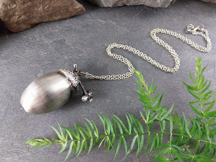 This handcrafted Maple Seed Pendant features a genuine natural maple seed, preserved through electroforming to capture its delicate form and intricate texture in lasting detail.