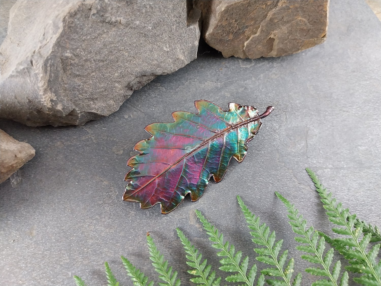 Oak Leaf Brooch – Rainbow Copper Patina (78mm)