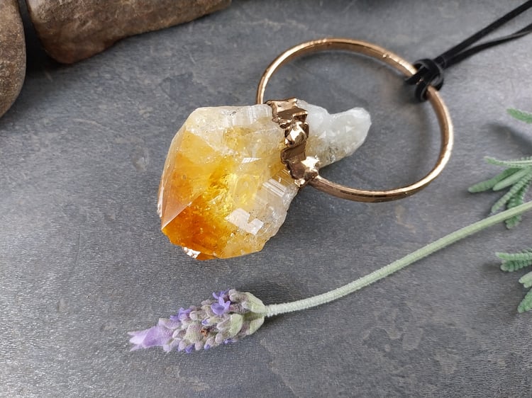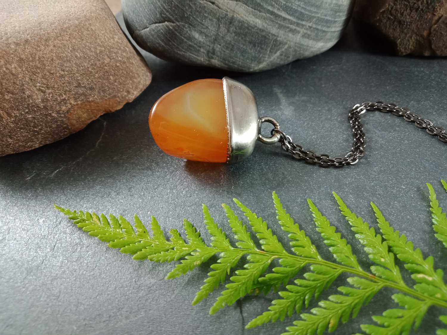 This handcrafted pendant features a gorgeous tumbled carnelian crystal, preserved forever through the art of electroforming. The warm, fiery hues of carnelian bring natural vibrance and character, making each piece truly one-of-a-kind.