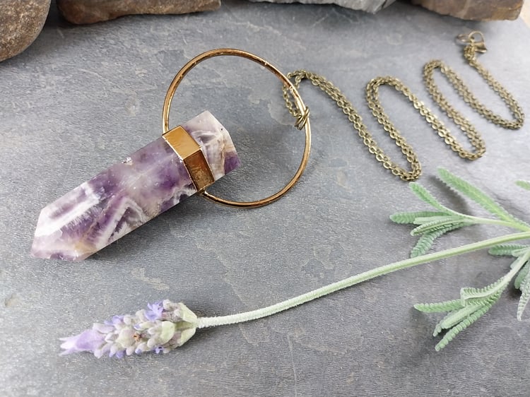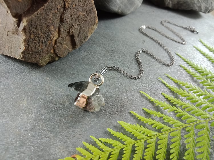 Finished in a rustic antique nickel, the pendant carries an earthy metallic patina that complements the rich tones of the crystal. At 35mm, it is a bold yet wearable piece—perfect for daily wear or as a unique, nature-inspired gift.