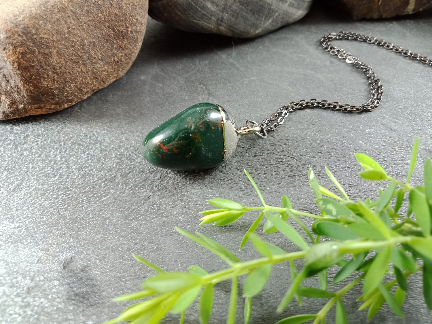 Tumbled Bloodstone Crystal Pendant – Bright Nickel (28mm)