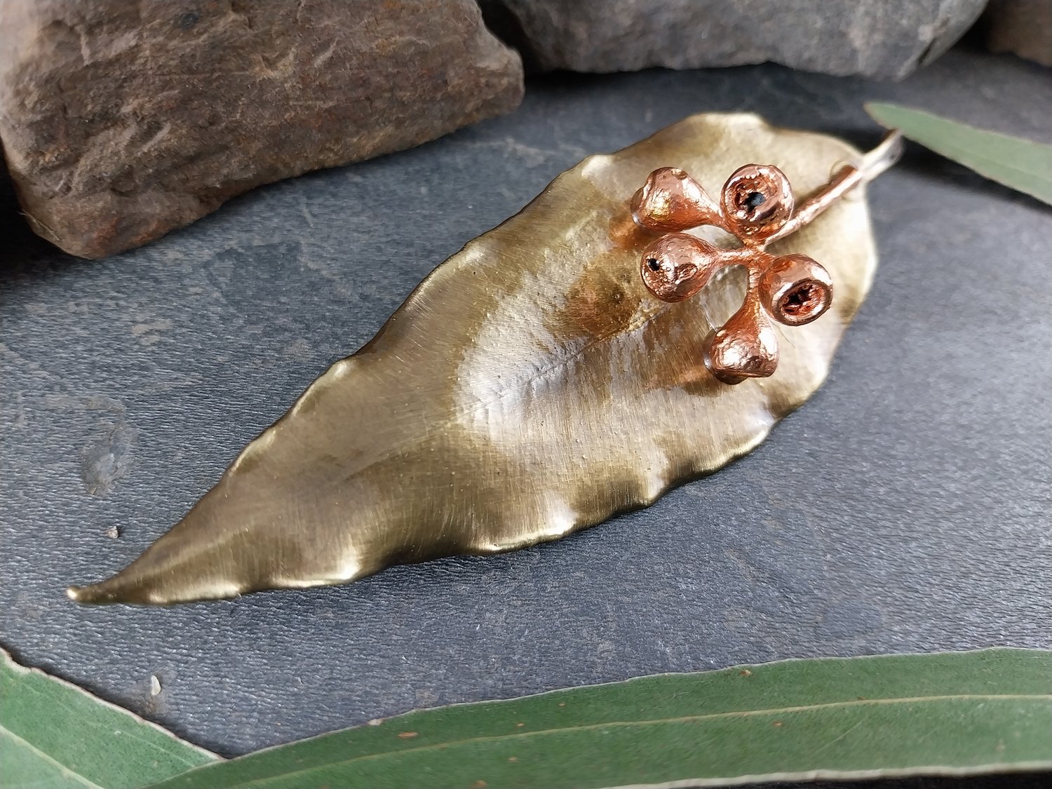 Gum Leaf / Gum Nut Brooch – Antique Brass & Bright Copper (110mm)
