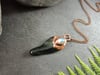 Finished in rustic antique copper, the pendant carries a warm, earthy patina that enhances the depth and brilliance of both stones. At 40mm, it is a versatile size—perfect for everyday wear or as a unique, nature-inspired gift.