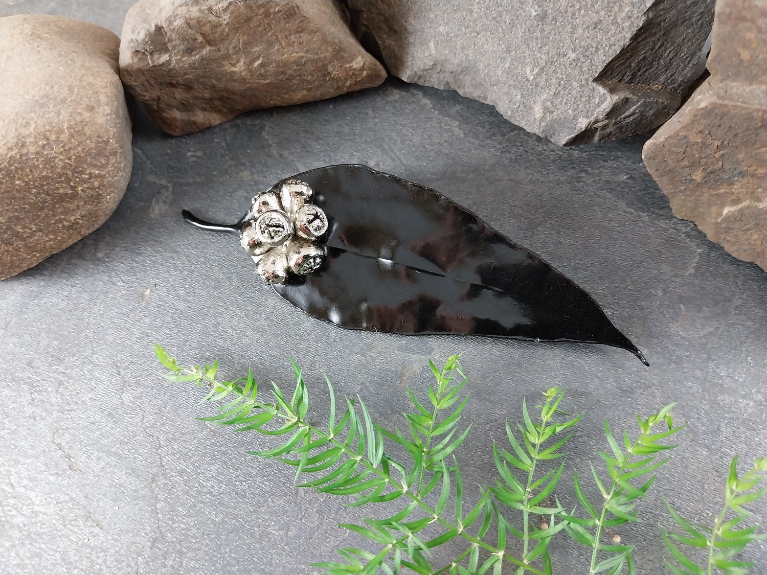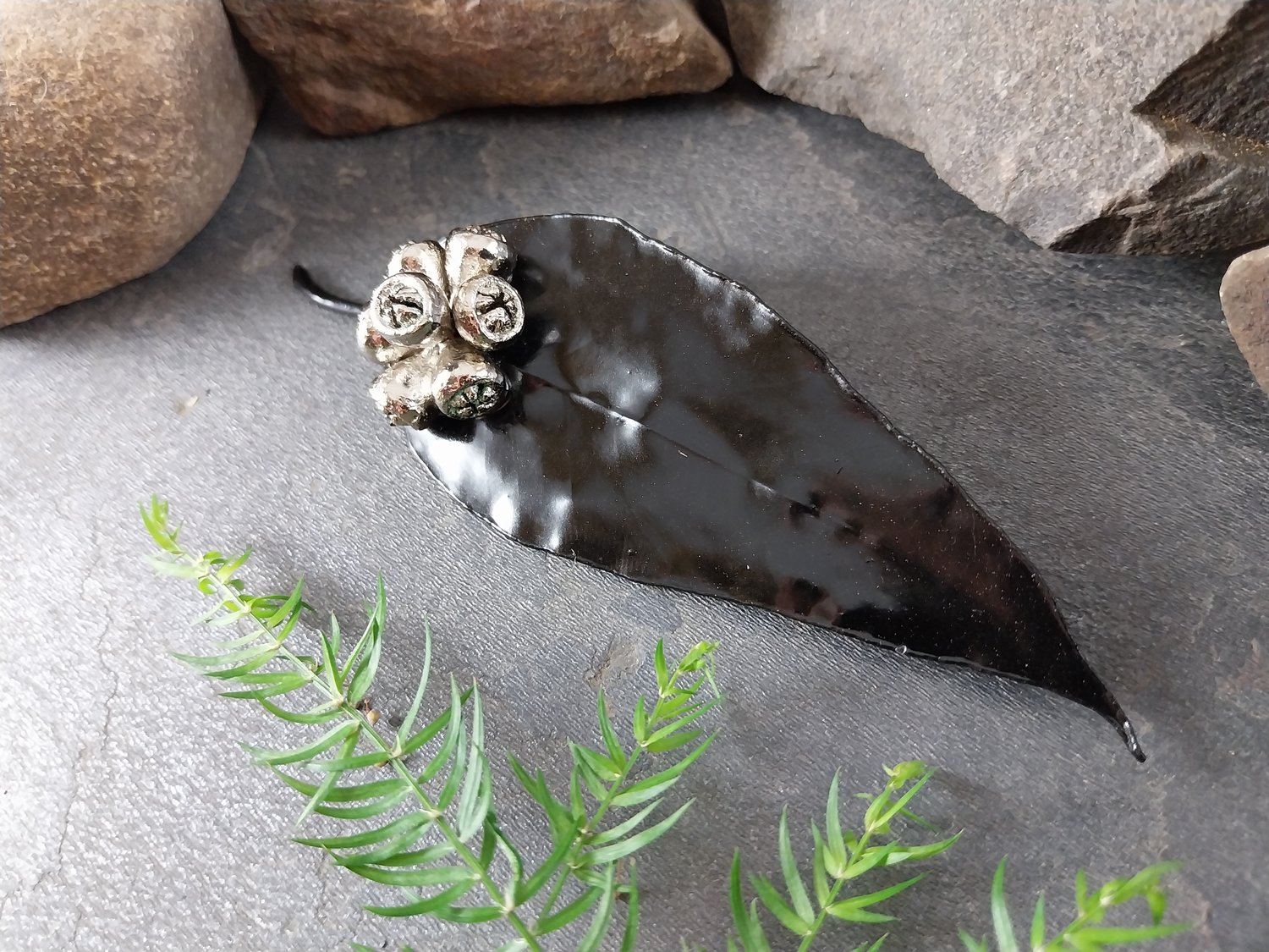 Gum Leaf / Gum Nut Brooch – Black Chrome & Bright Nickel (110mm)