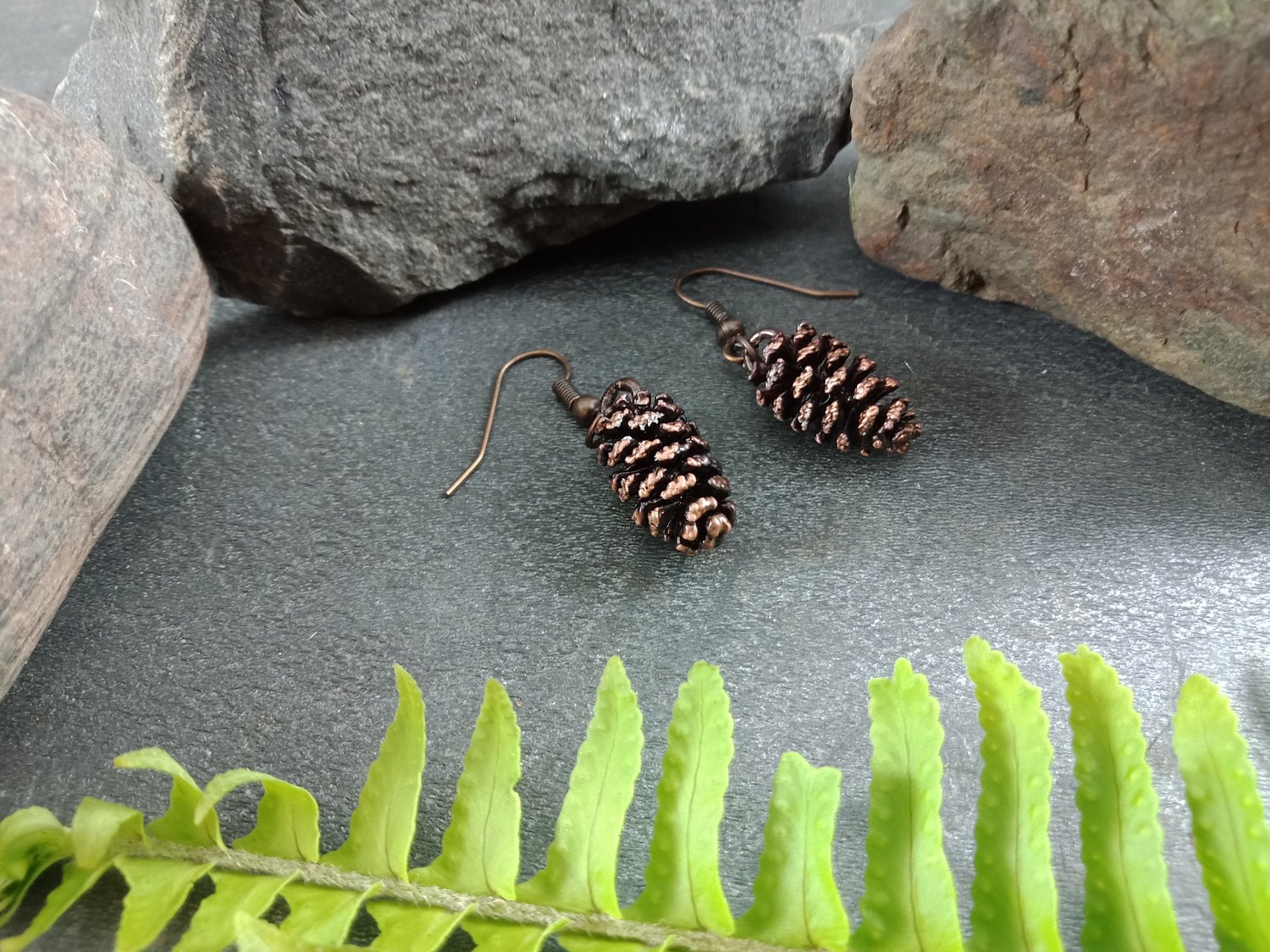 Finished in rustic antique copper, the earrings carry a warm, earthy patina that enhances the organic charm of the pine cones. At 27mm, they are perfectly sized—lightweight, unique, and ideal for everyday wear.